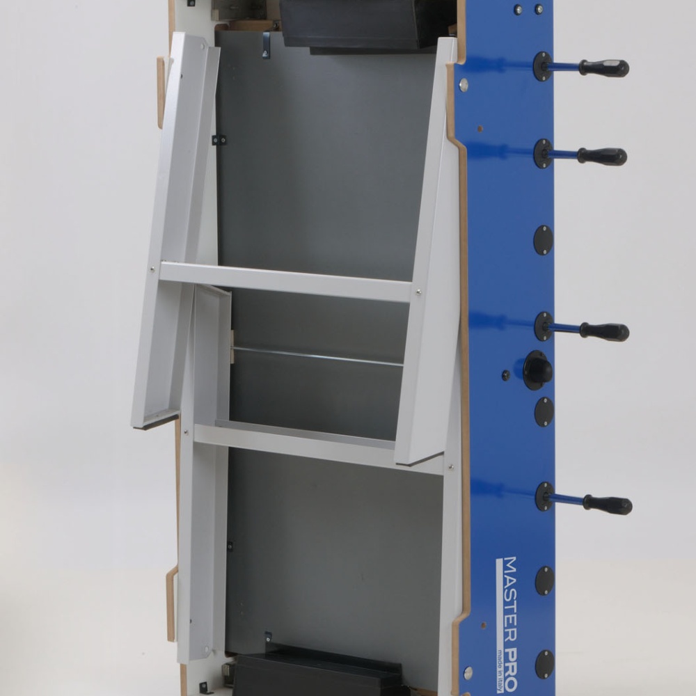 When equipped with telescopic safety bars (on request) the table ensures the highest protection for children’s eyes and face.