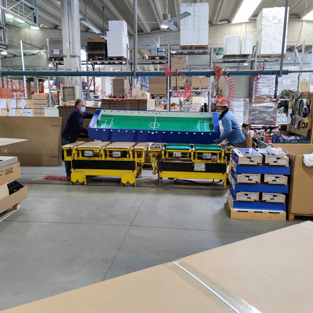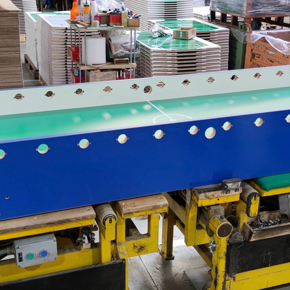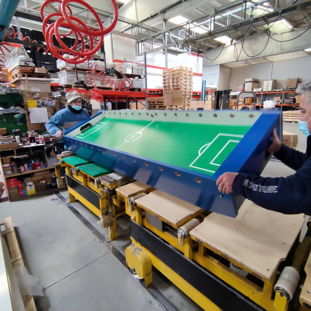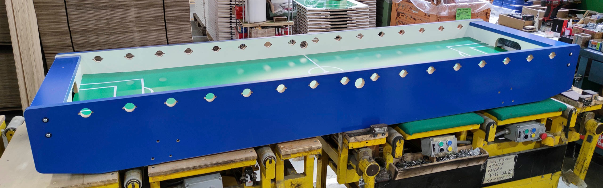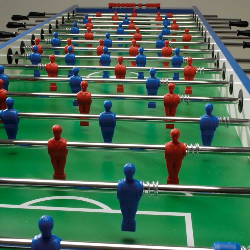 This extralarge football table, for 8 players, will offer increased fun and even more interesting actions, thanks to a longer playing field.