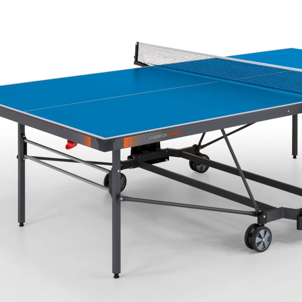 Extremely sturdy, thank you to its structure with square leg and doble connecting bars,  Champion Outdoor can be folded and carried easily thanks to the double wheels. The leg levellers allow to obtain perfectly flat tops on uneven terrains.