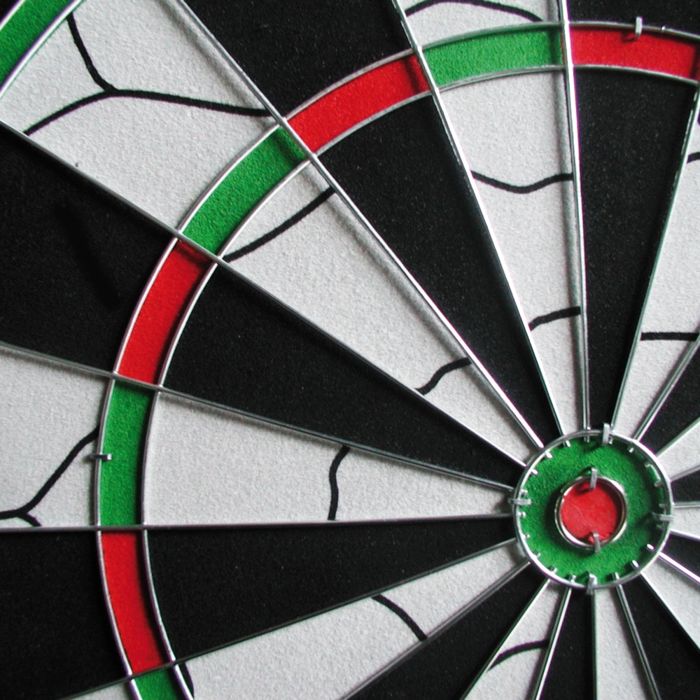 Traditional darts. Subdivision into 20 segments and 2 centres. Classic colors