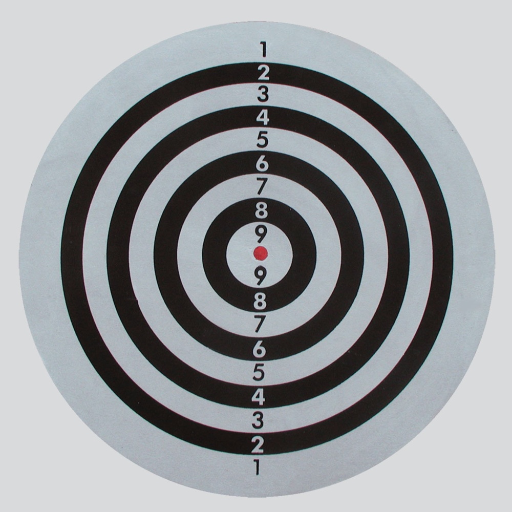 Dartboard side 2: Target Bullseye dart game. 8 concentric circles, traditional colours.