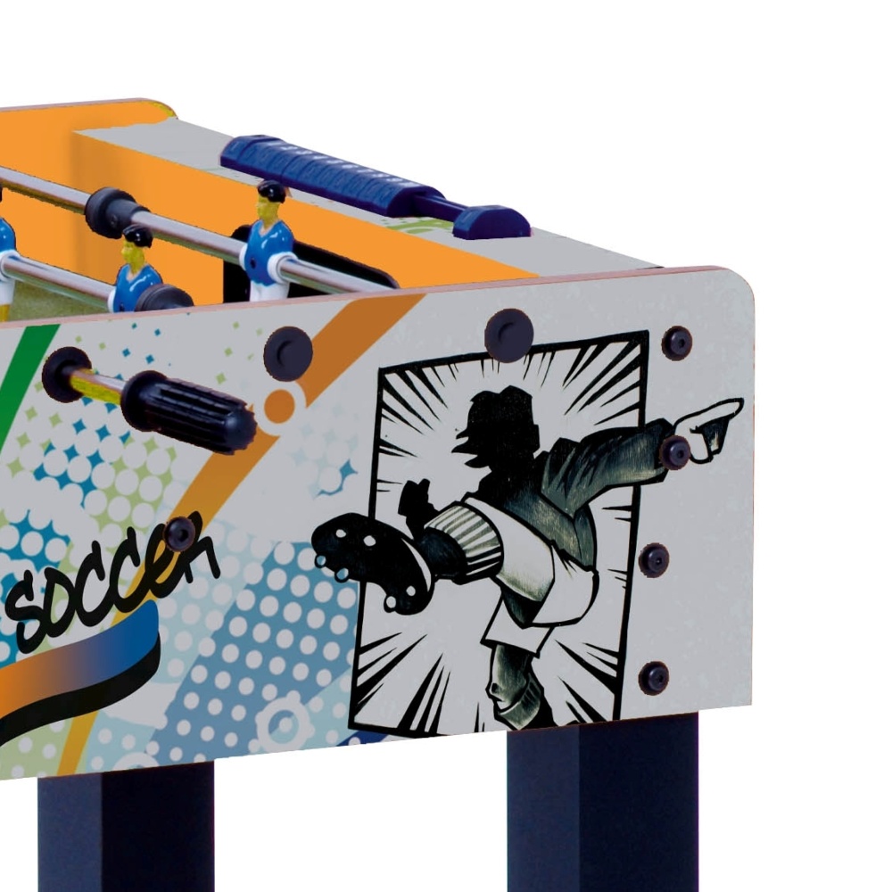 Football table with appealing graphics designed to offer the greatest fun to budding players.