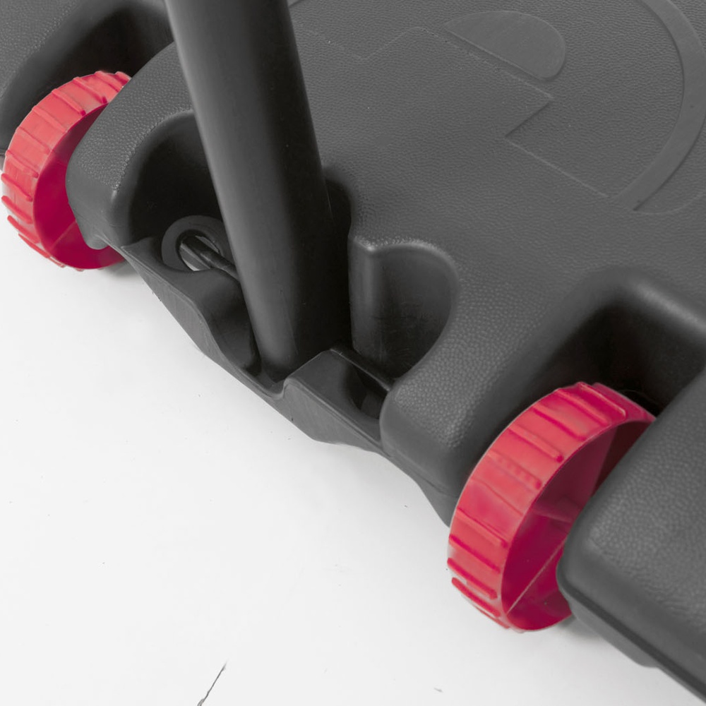 Black printed polyethylene base, equipped with wheels on the front, fillable with water or sand to ensure maximum stability during play.