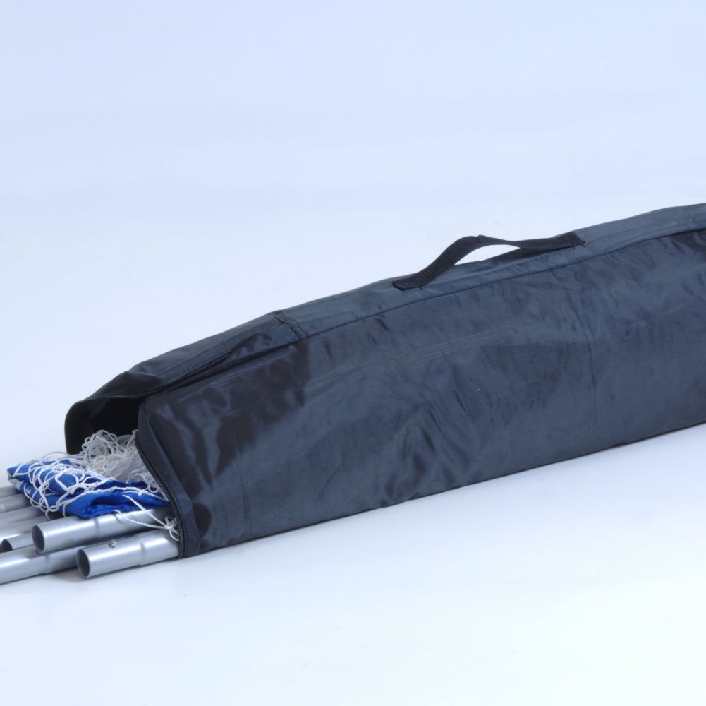 The goal equipment includes ground fixings for anchoring on various types of terrains and a practical bag to carry everywhere.