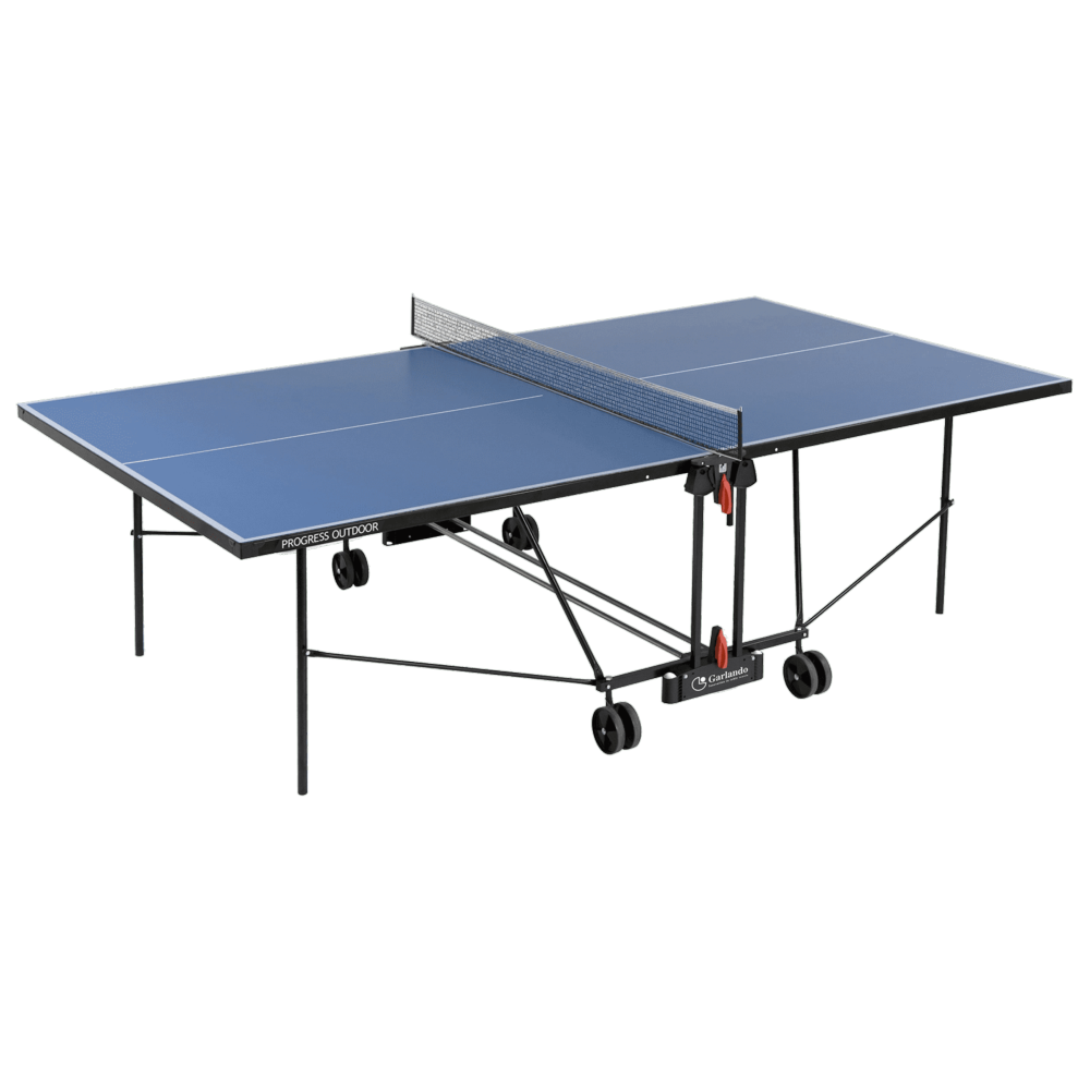Outdoor tennis table, foldable with automatic locking system, official competition size, ideal for family and leisure use. Available with blue top.