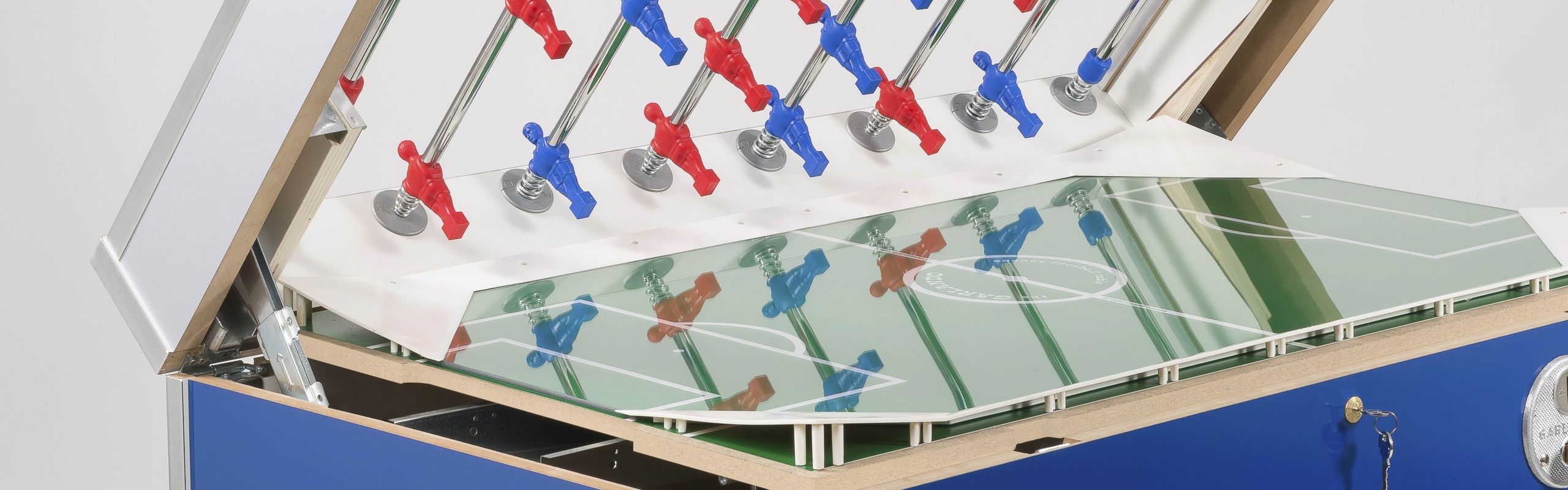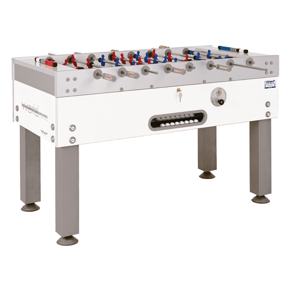 The all-white version of the Maracanà, is a sturdy, highly trustworthy and very easy to operate bar football table: the playing field can be comfortably cleaned because separable from the cabinet upper part, while the ball sliding inner mechanism is comprised of replaceable singularly parts.