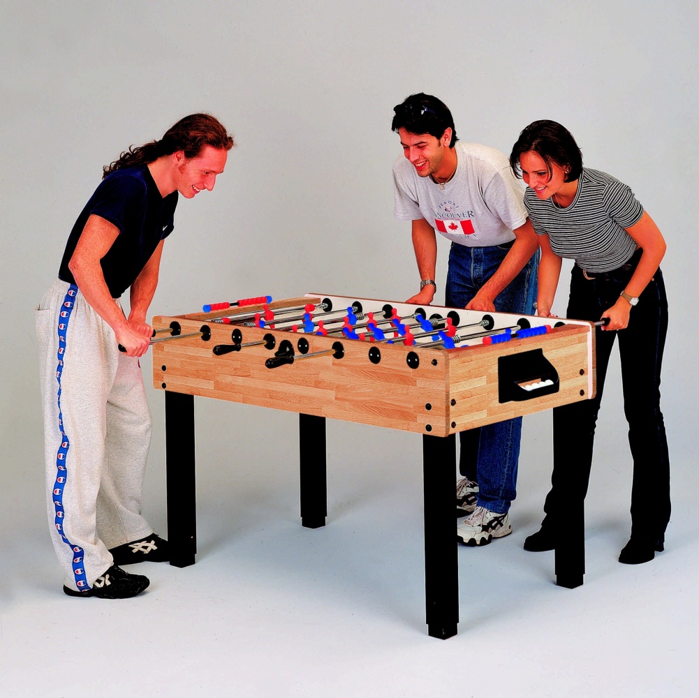 This entry level freeplay football table will satisfy the requirements of the whole family including young children: constructed using sturdy materials and the same components as the bar football tables, it has a mechanism which allows to adjust the table height at the most appropriate level to suit the little ones.