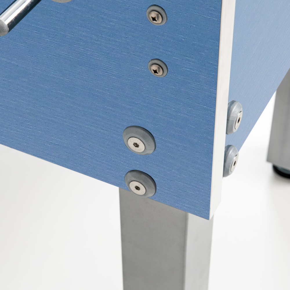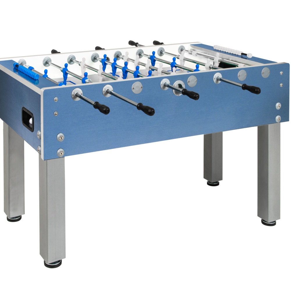 The new G-500 Weatherproof blue features silver details and legs and includes levellers, for a perfectly flat playfield on any ground.