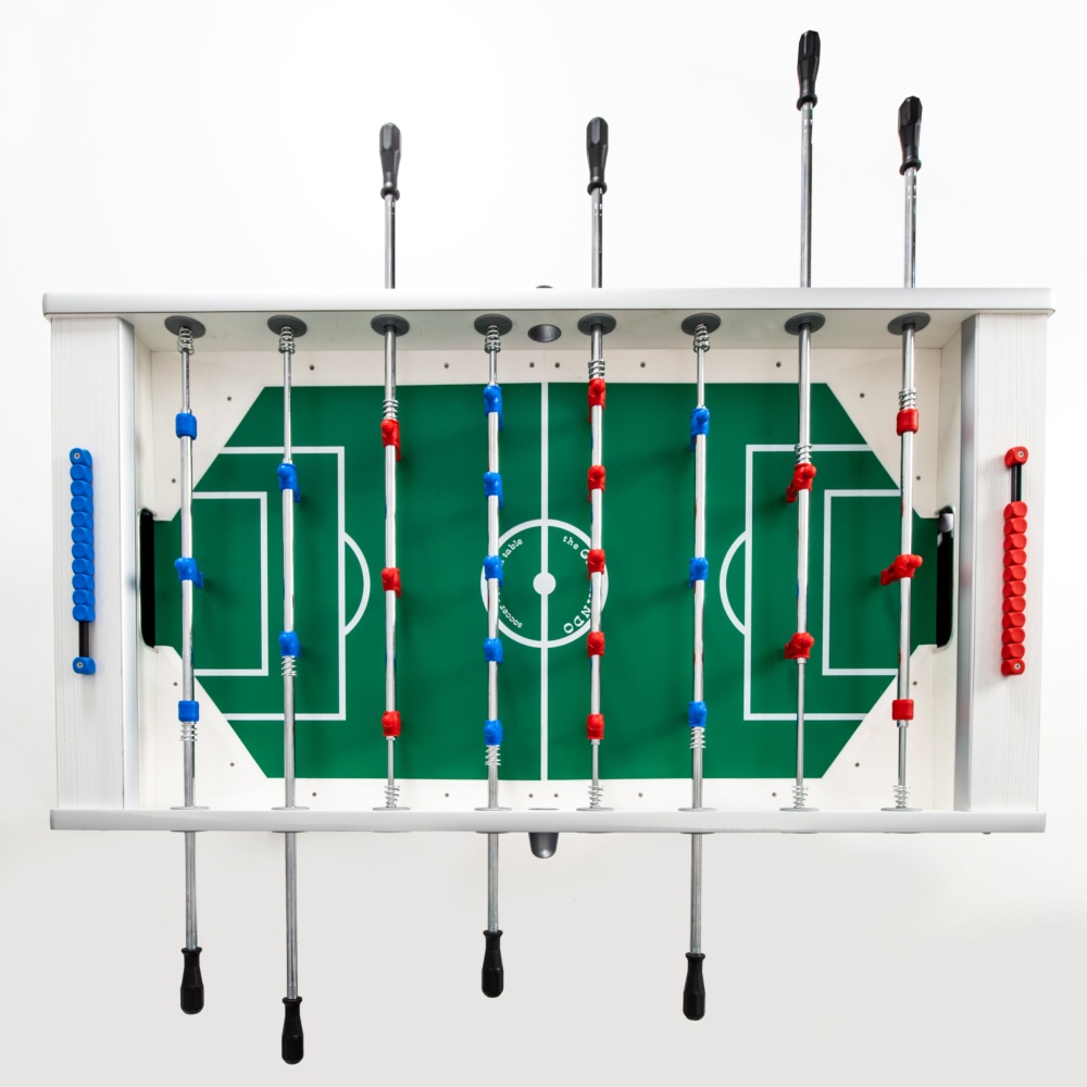 With children, always prefer football tables equipped with telescopic safety bars, whose ends do not protrude from the cabinet.