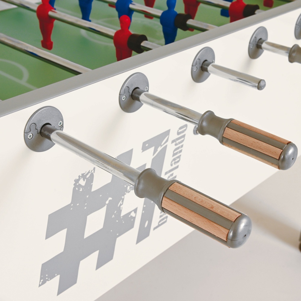 In presenza di bambini è preferibile scegliere il calciobalilla in versione con aste telescopiche di sicurezza, le cui parti terminali non fuoriescono dal mobile.