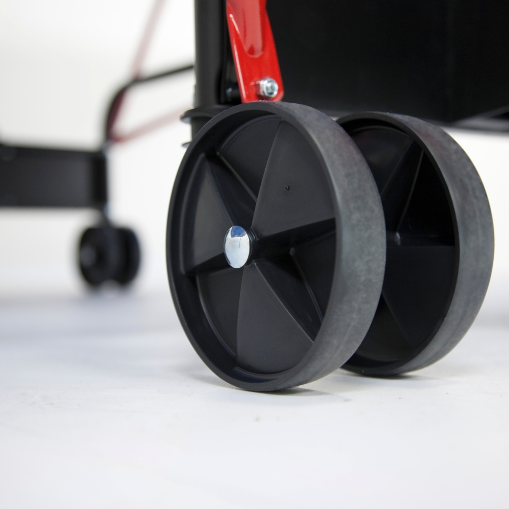 Four double wheels, two of which rotating at 360°, enable easier displacing when the table is folded.