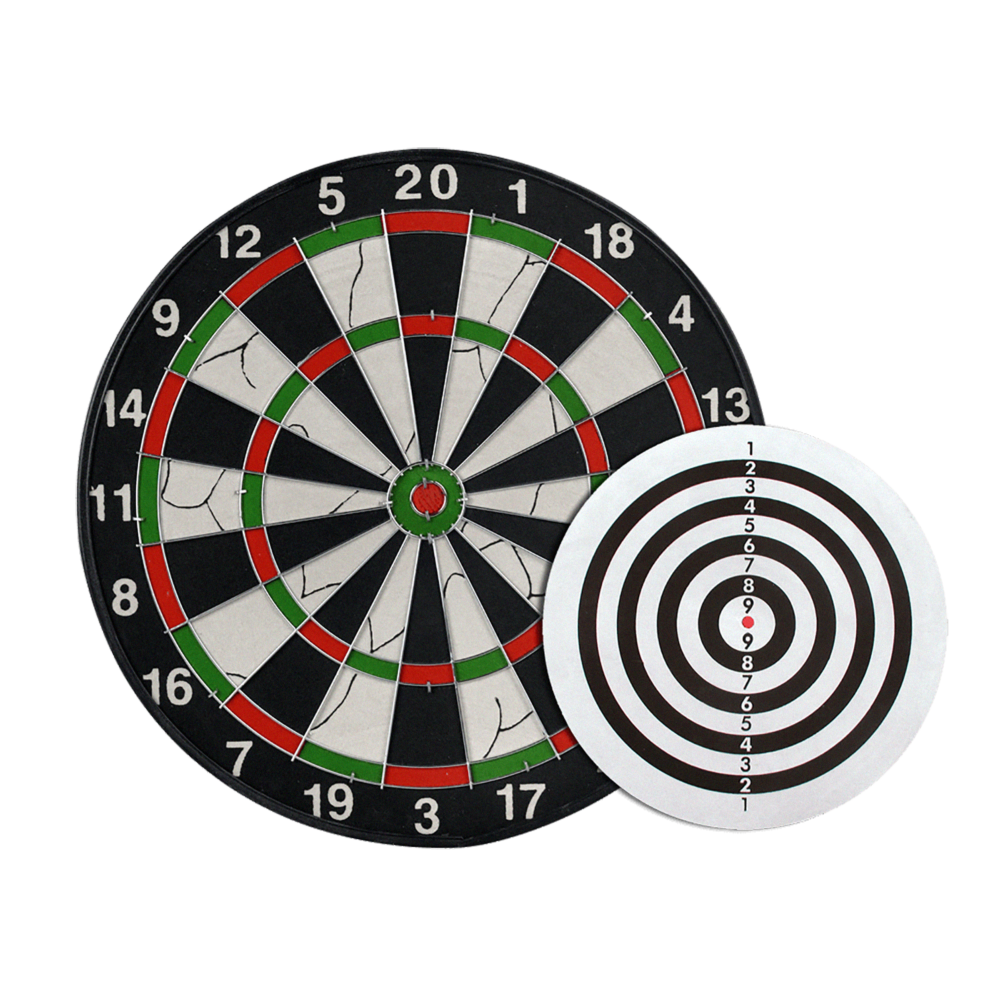 Double-sided dart board with locker.