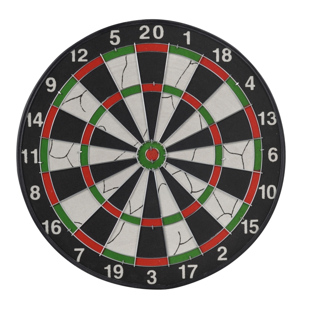 Dartboard side 1: Traditional dart game. Classical color segment and black web.