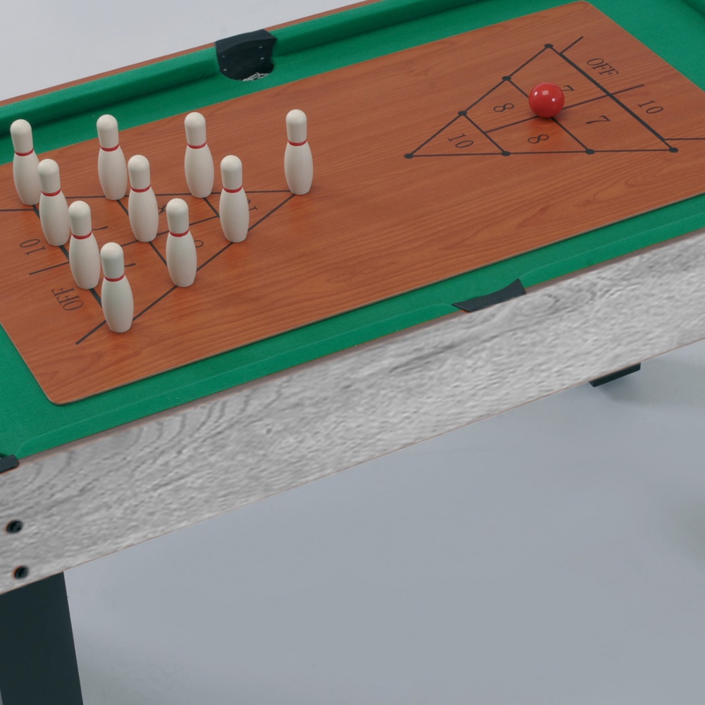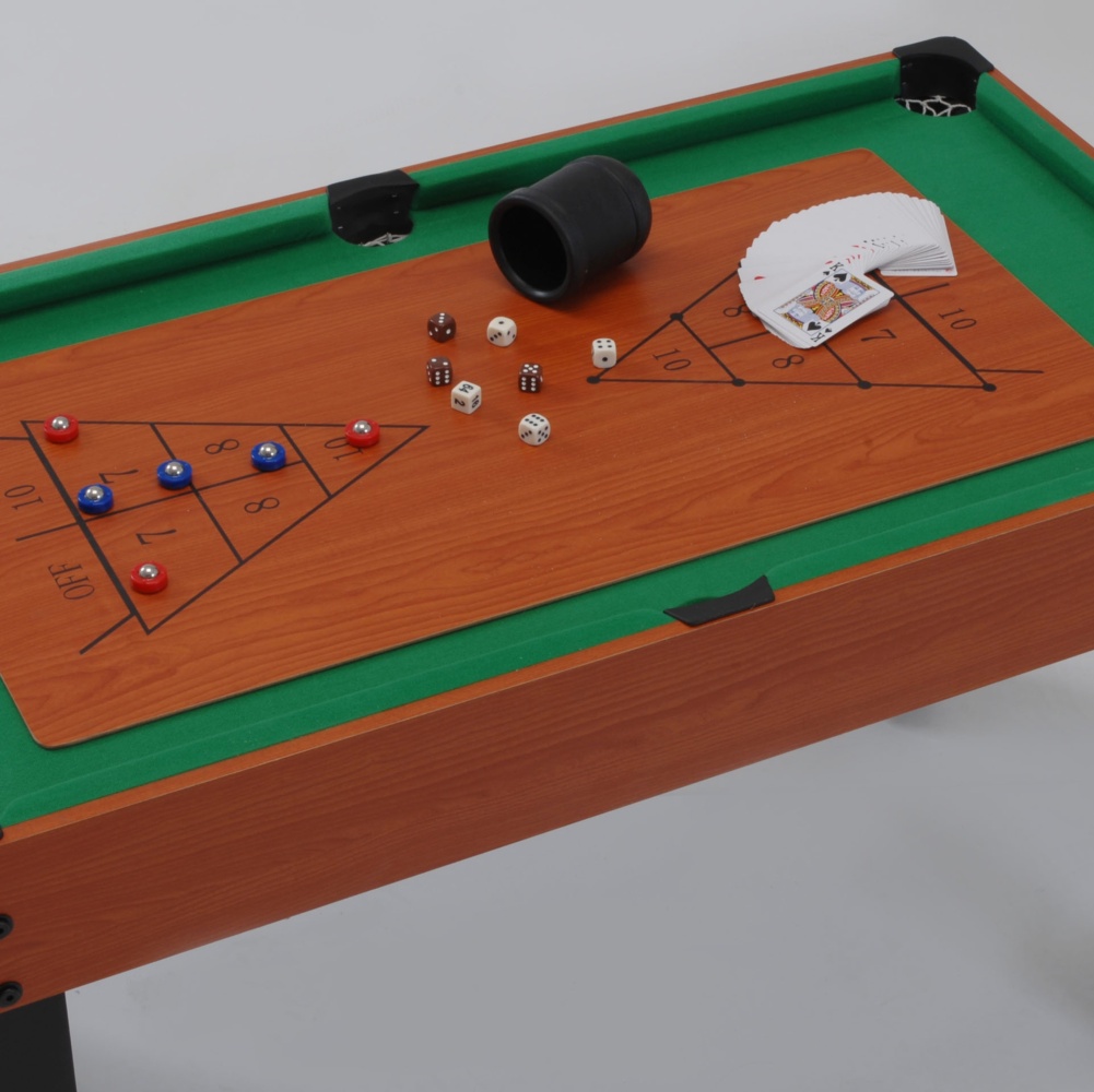 Bring home the fun and game variety of a game hall with Multi 12, the versatile multifunctional table which turns into no less than 12 different games, selected among the most loved classics: table football, pool, table tennis, speedhockey, bowling, shuffleboard, backgammon, black jack, chess, draughts, dice with box, cards.