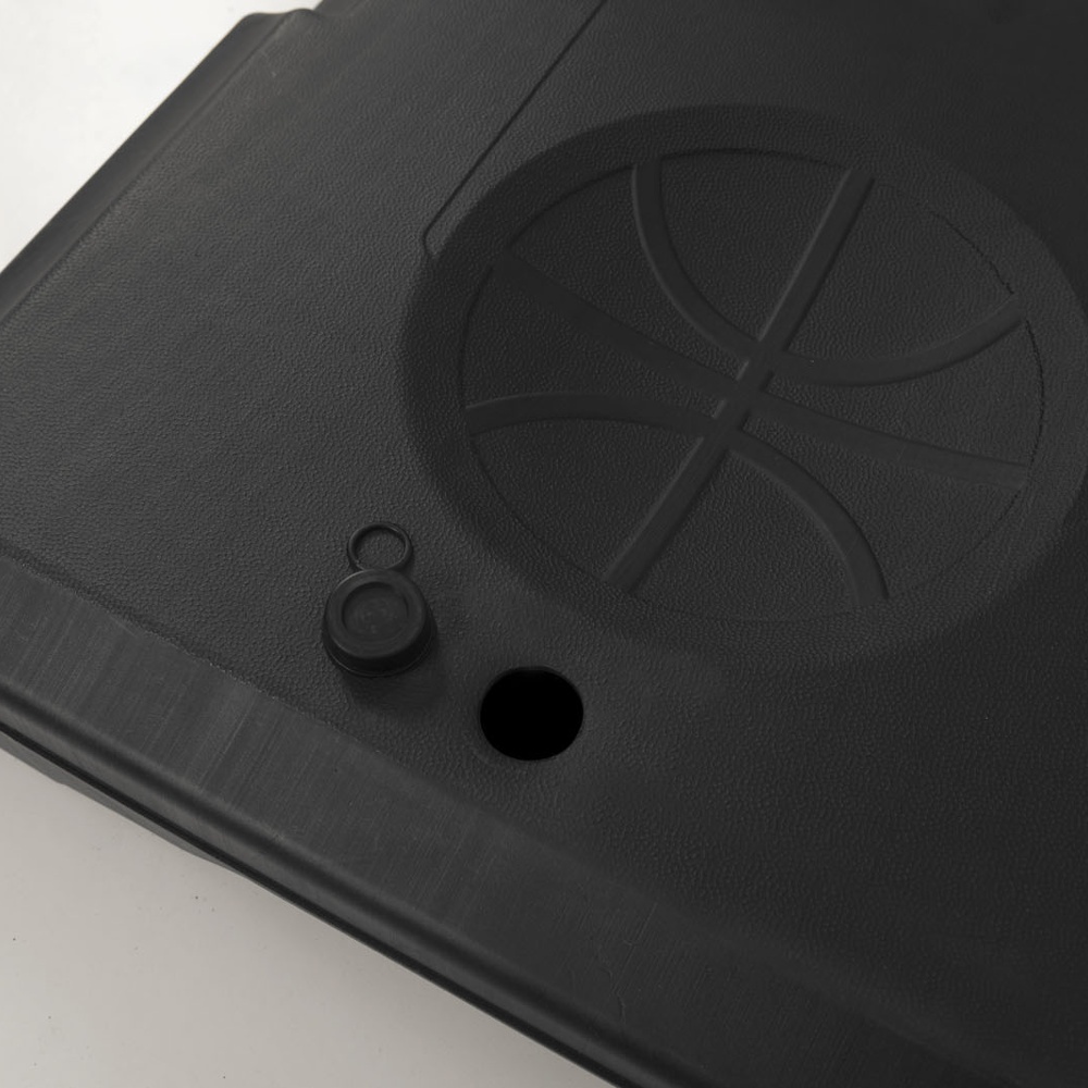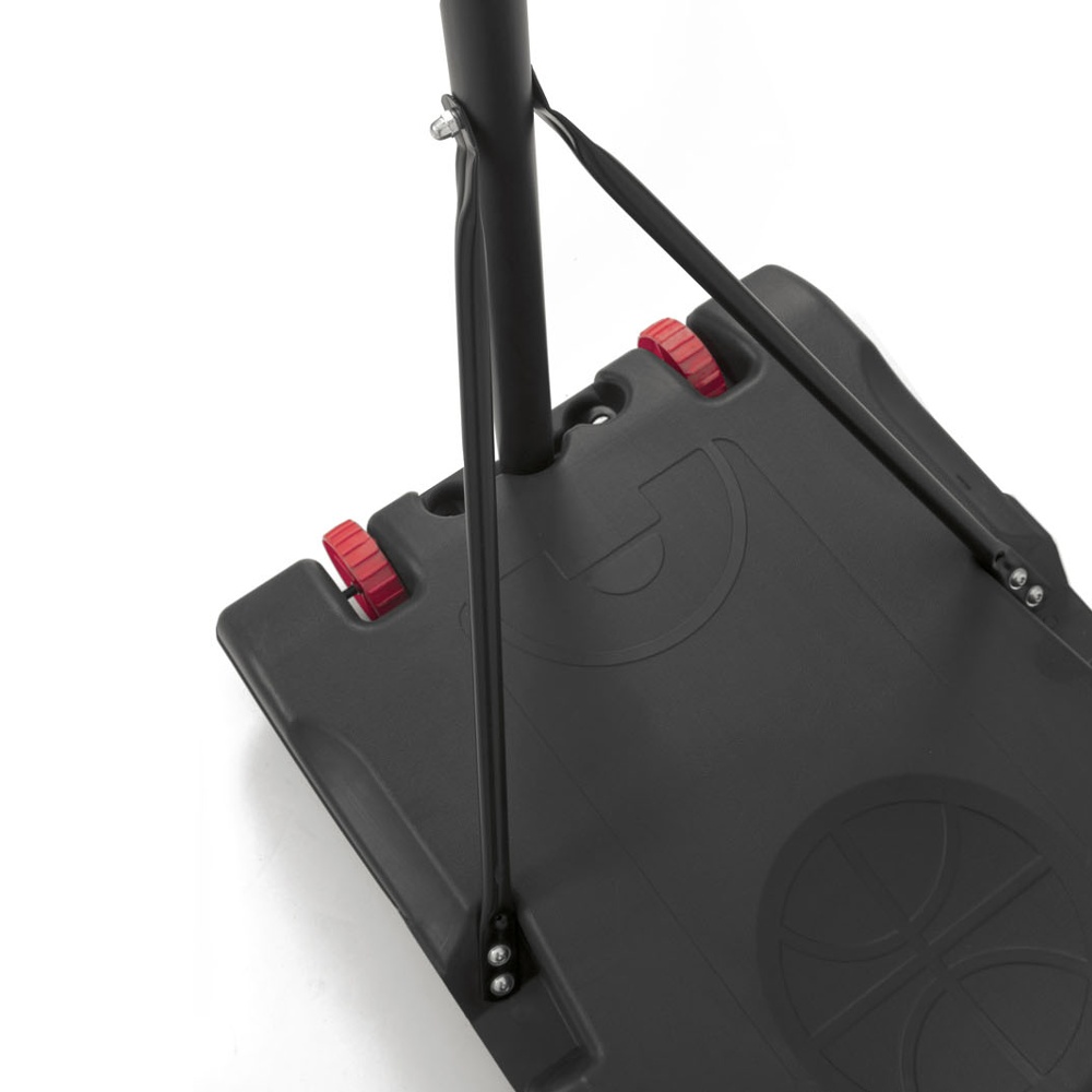Black printed polyethylene base, equipped with wheels on the front, fillable with water or sand to ensure maximum stability during play.
